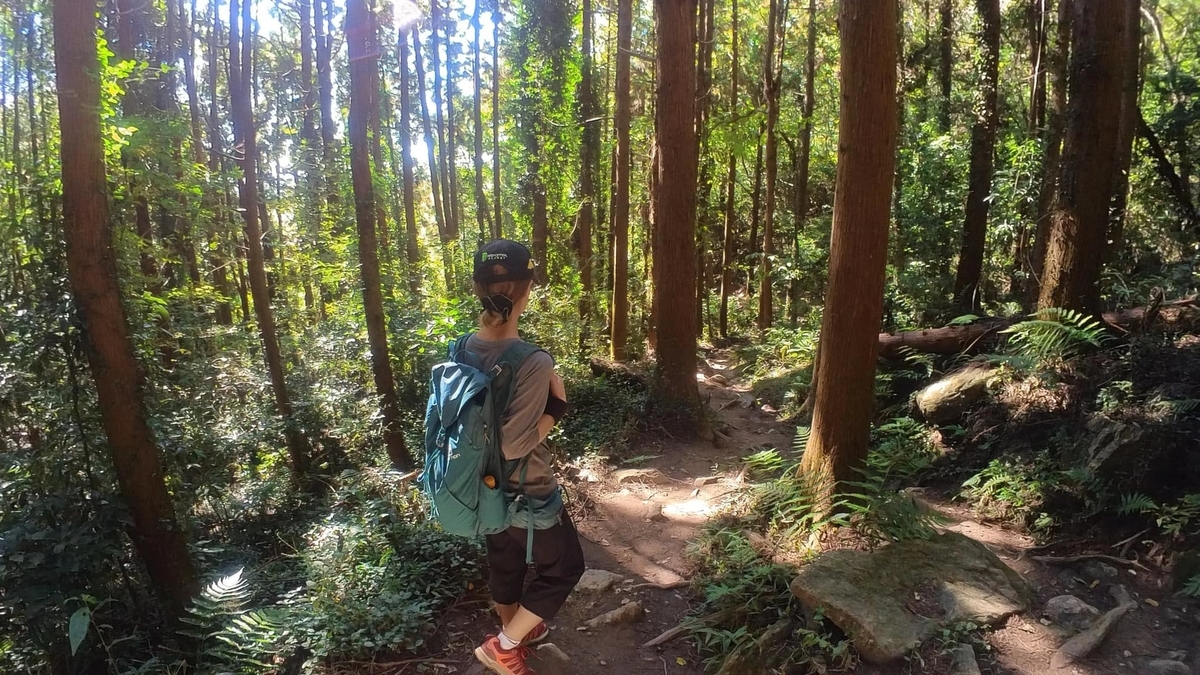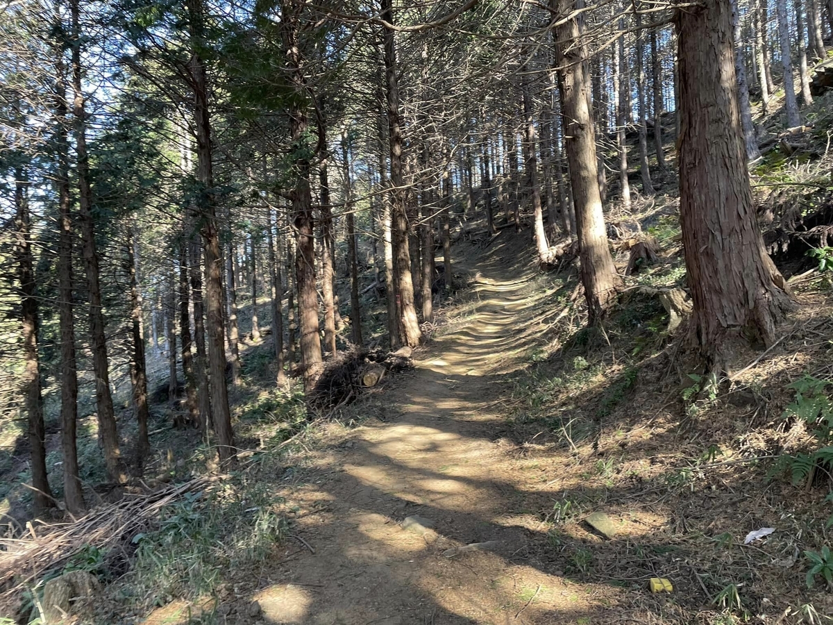 急登がないわけではないですが、登山口からすぐの短い岩場と、山頂手前くらいからのみで、それ以外は木々に囲まれた緩やかな道を行きます。