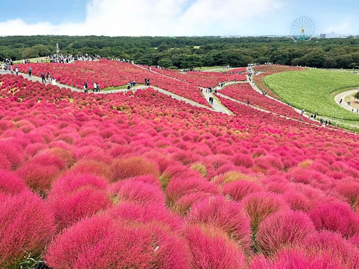 緑色から赤色へと変わっていくコキアのグラデーションも美しいので、ぜひ秋の国営ひたち海浜公園を訪れてみて下さいね(^^)