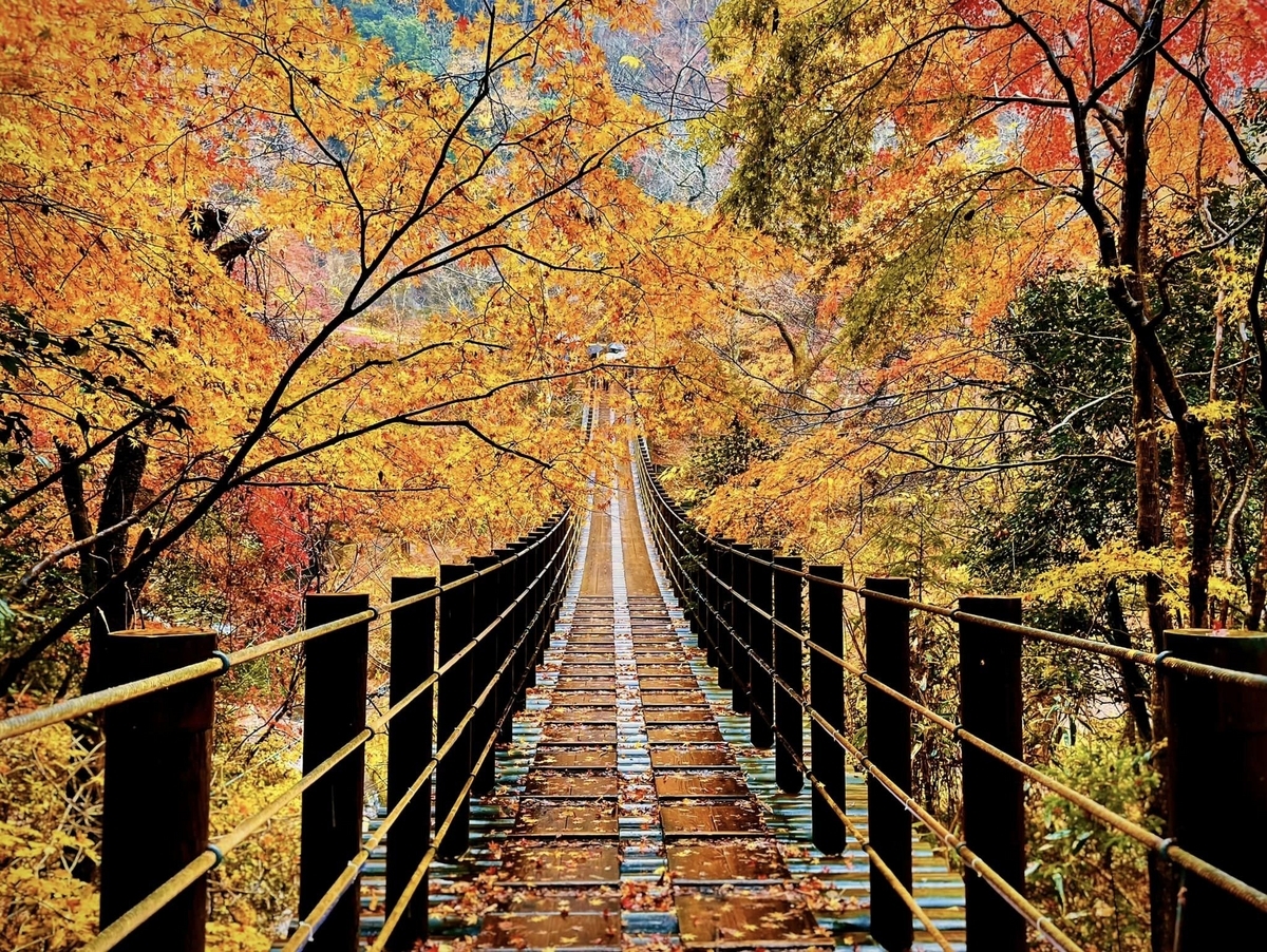 渓谷内にある「汐見滝吊り橋」は特に人気のスポットで、フォトスポットにもピッタリ♪