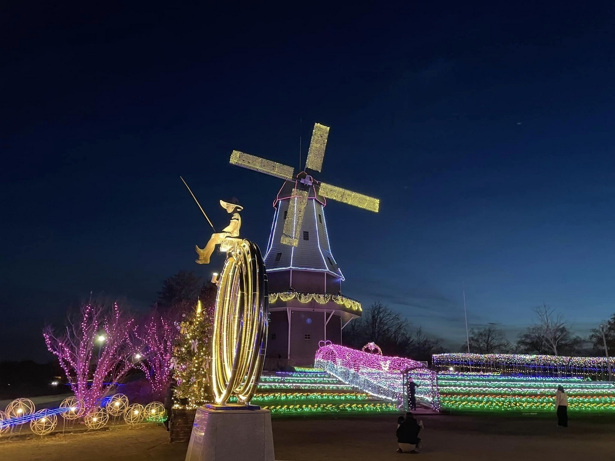 オランダ型風車はのぼることもでき、上から園内のイルミネーションを一望することもできます♪