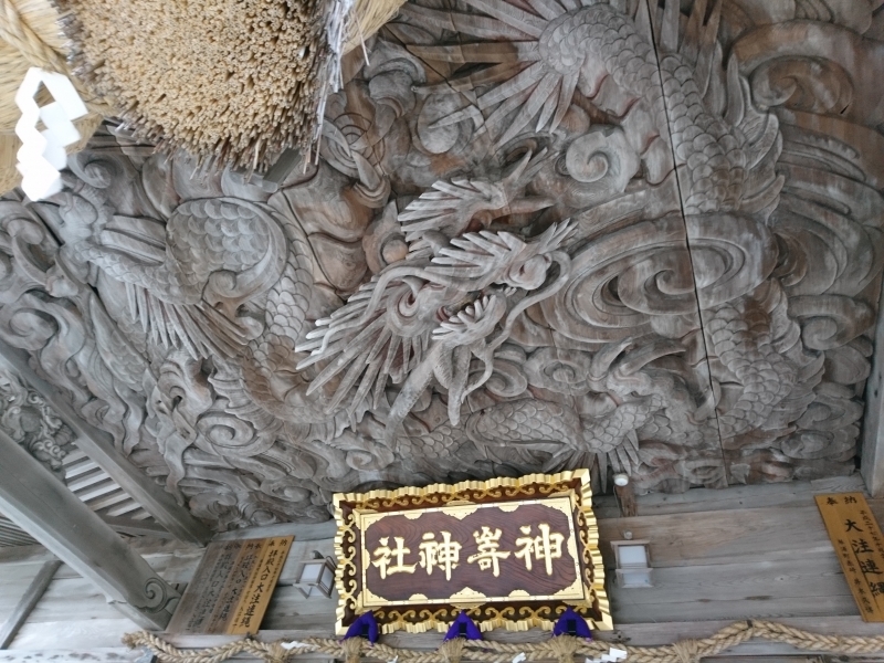 拝殿天井の龍の彫刻がお見事な「神崎神社」!龍がもつ珠の真下に立ってお願い事をすると、念願成就の御利益があるかも!?